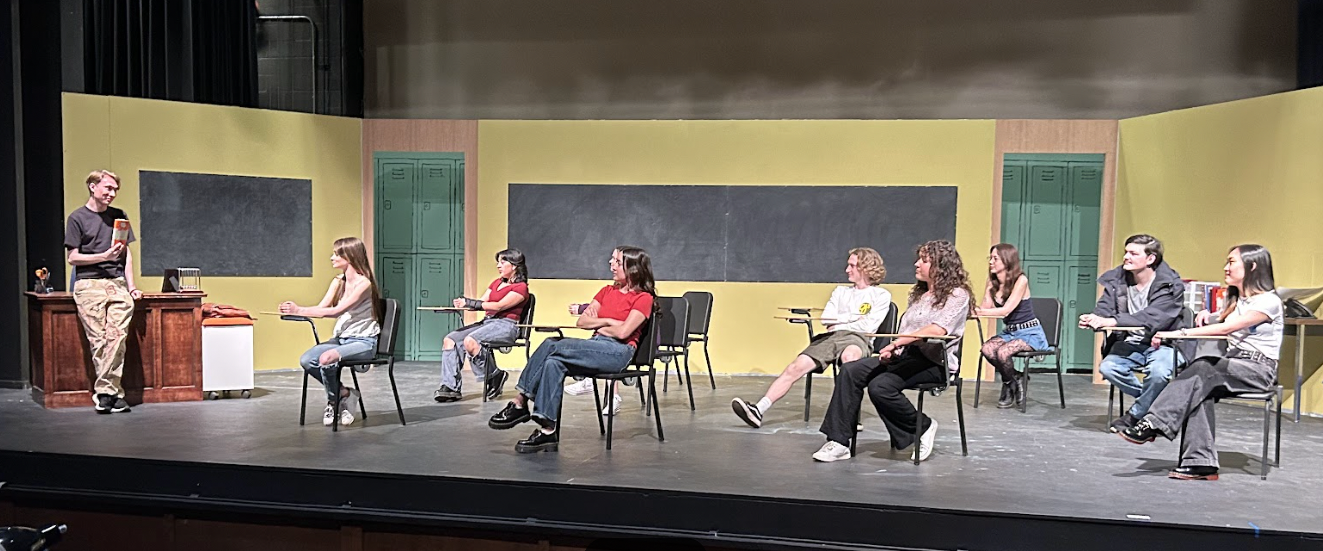 In a featured role, junior Ashton Medick (he/him) plays the smart, engaging, and perceptive Mr. Smith, the most popular teacher at the school. Senior Ka’Nayah Landers-Daniels (she/her) serves as the Stage Manager, the backstage leader and unsung hero of every production. The students’ majors range from Theatre: Performance and Theatre Studies to Justice, Community and Leadership, to Media Production, Politics, Finance, and Computer Science.