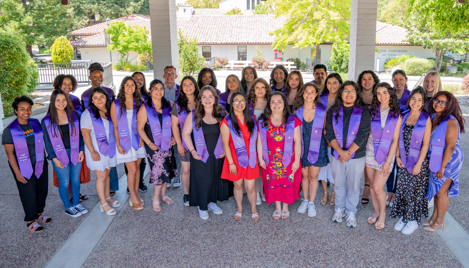 Forty-four students stepped onto the Moraga Room stage on May 22 to receive purple stoles embroidered with the words “High Potential Program.” Each was embraced by parents, siblings, best friends, mentors, and HP staff members including Joy Aburquez MA ’19.