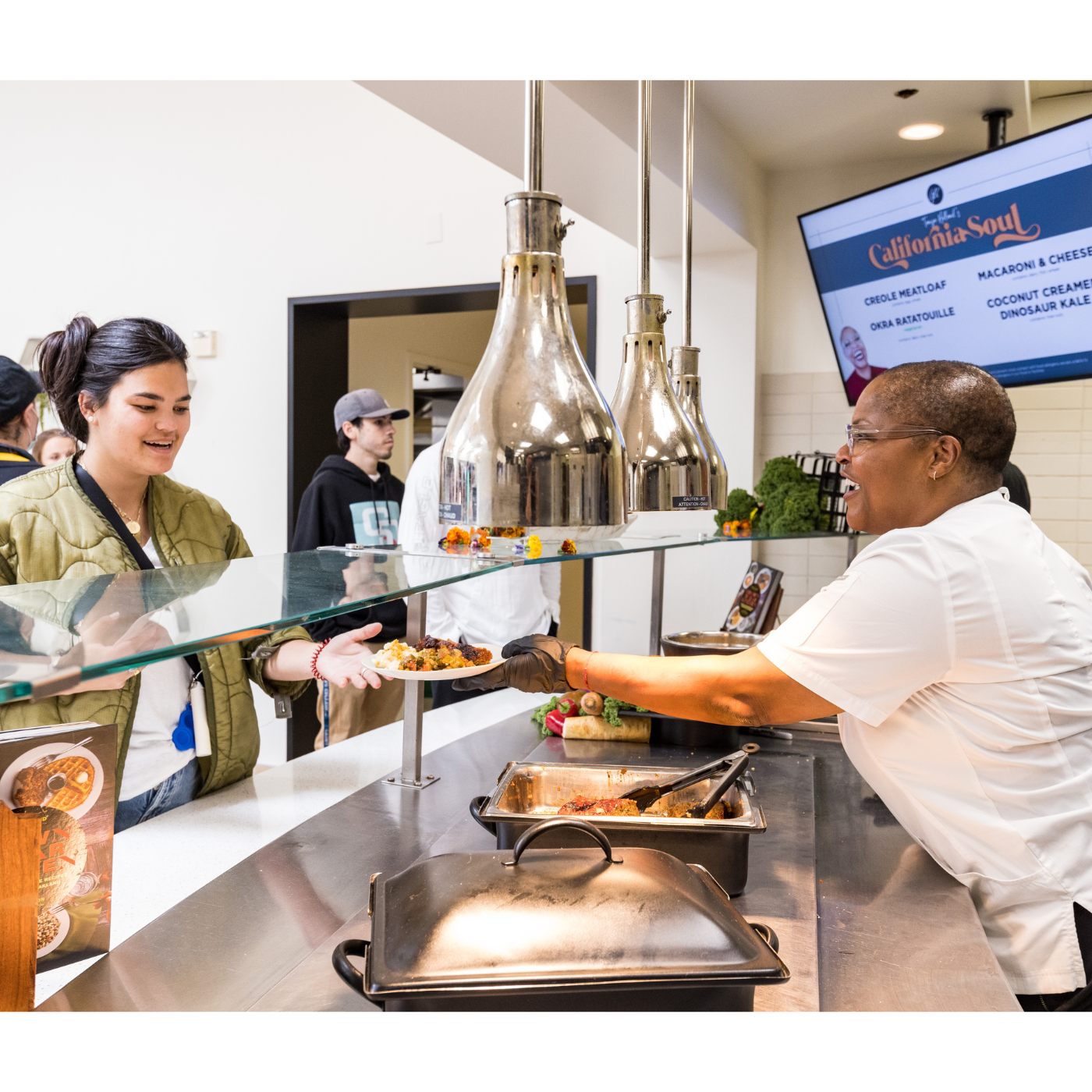 Saint Mary’s students, faculty, and staff got a tasty surprise when they stopped into Oliver Hall for lunch on a recent Wednesday afternoon. Celebrated East Bay chef Tanya Holland joined The Gael Dining to produce a special menu as part of the food provider’s Week of Welcome.