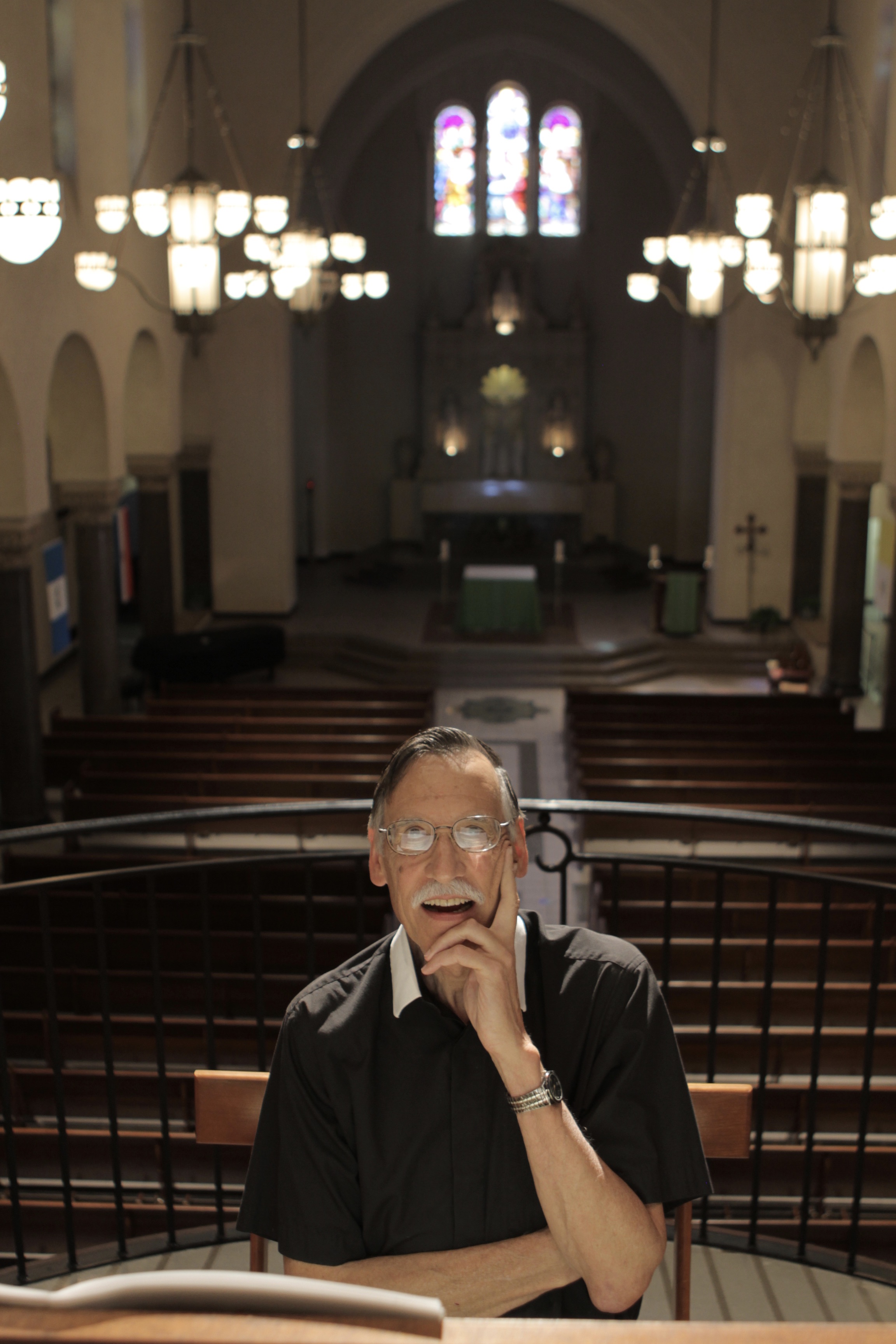 A moment of delight: Brother Martin Yribarren, FSC ’71 in the Saint Mary's College Chapel, where he could often be found playing the 3,649-pipe organ / Photo by Gerry Serrano