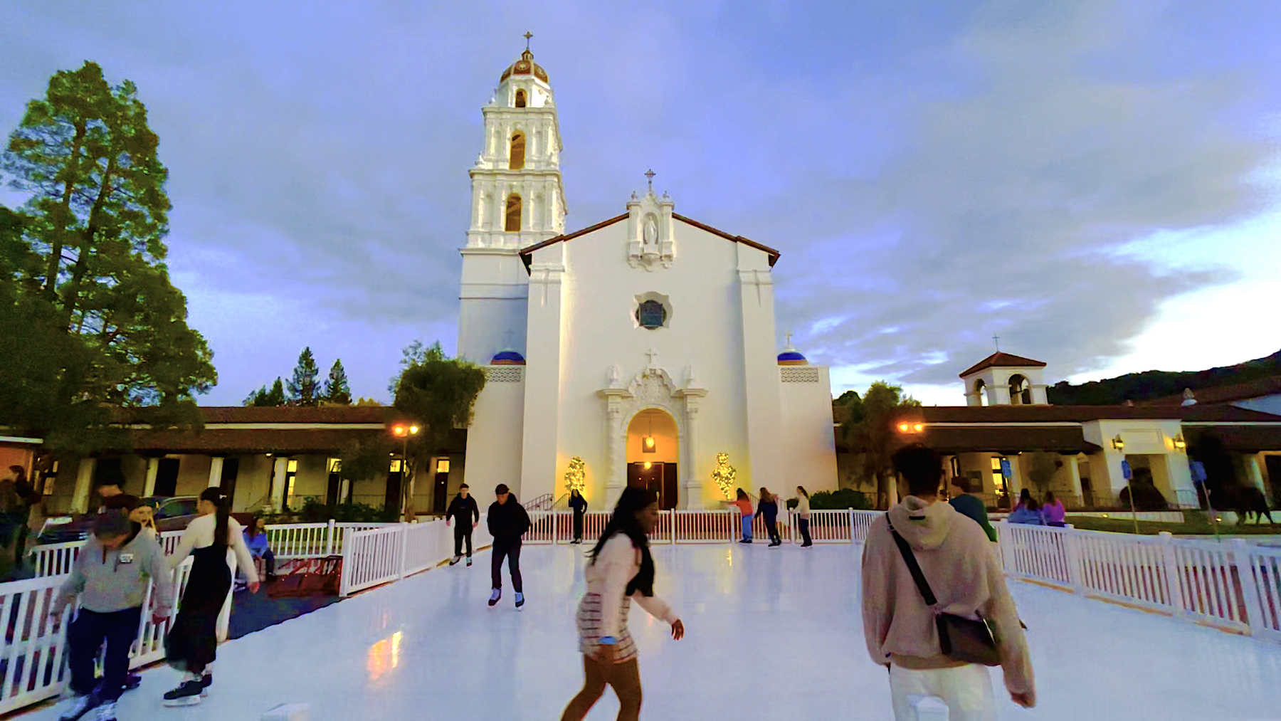 Ice skating is a rare and unique experience in the Bay Area given the region’s temperate climate, but that’s exactly what occurred recently on campus at Saint Mary’s inaugural Winter Fest celebration. The event, which showcased a variety of activities in addition to the ice rink in front of the Chapel, took place Friday, Dec. 1, on and around Chapel Lawn.