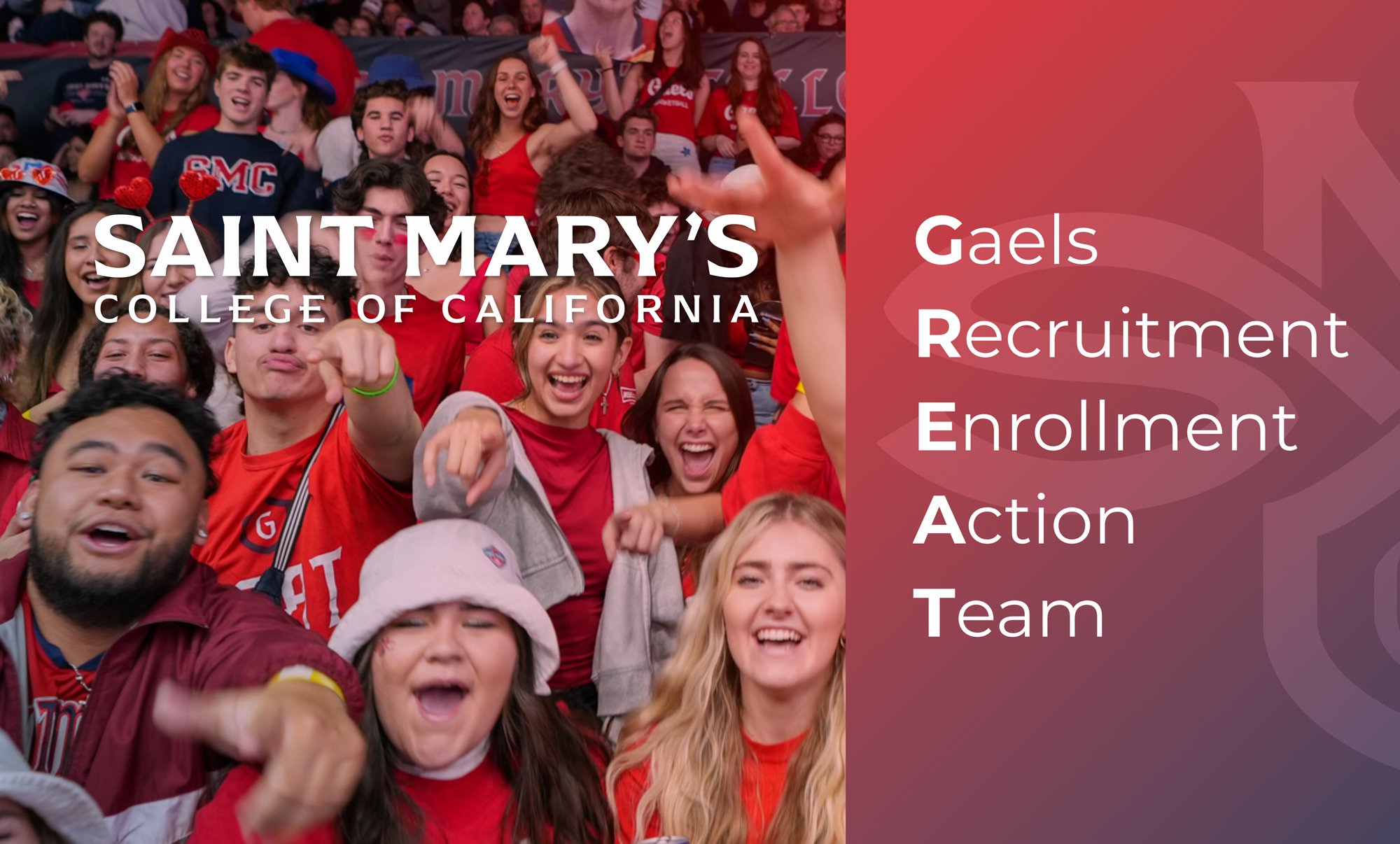 I am delighted to announce that Saint Mary's longstanding “Refer a Gael” program has been re-imagined as SMC's GREAT (Gaels Recruitment Enrollment Action Team) referral program—and you are invited to participate!