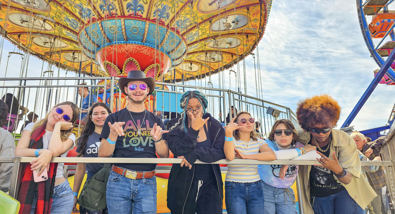 Far out: Gael beachgoers pose for a quick photo while waiting in line to ride the Sea Swings at the Santa Cruz Beach Boardwalk on Sunday, Sept. 15. / Photo courtesy Hector Garcia ’28